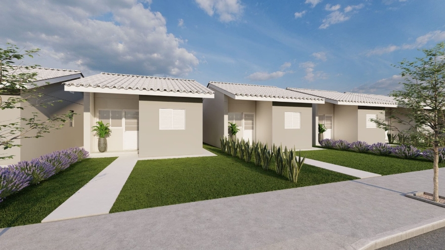 São casas térreas não geminadas, com 2 dormitórios, área de serviço coberta e espaço para ampliação.
